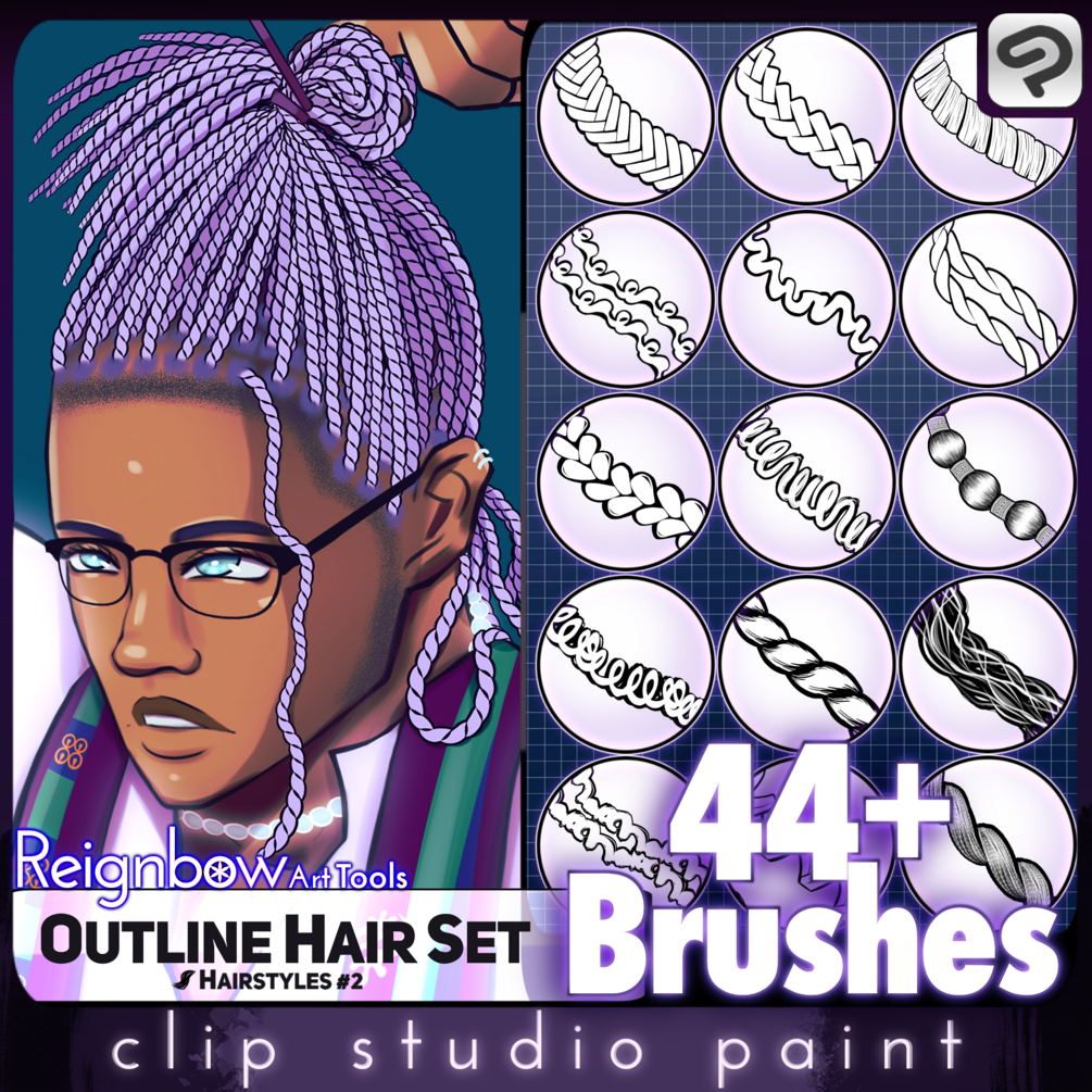 Hair Style Brushes #2 OUTLINE Set (Braids, Curls, Locs, Twists) | Clip Studio Paint • Anime, Manga, Comic Hair Brushes