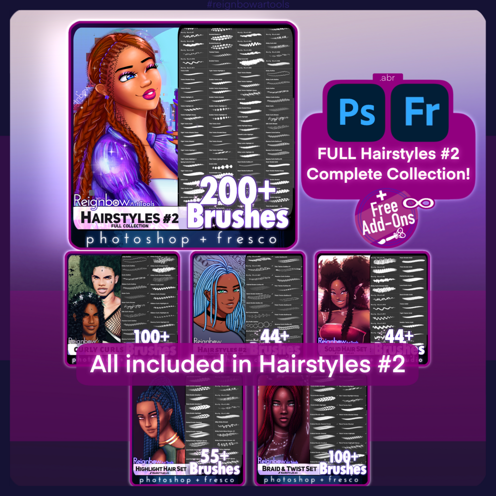 ProcreateClip Studio Paint100+ Braid and Twist Brushes; 100+ Curly Hair Brushes; Free Updates & Add-Ons
