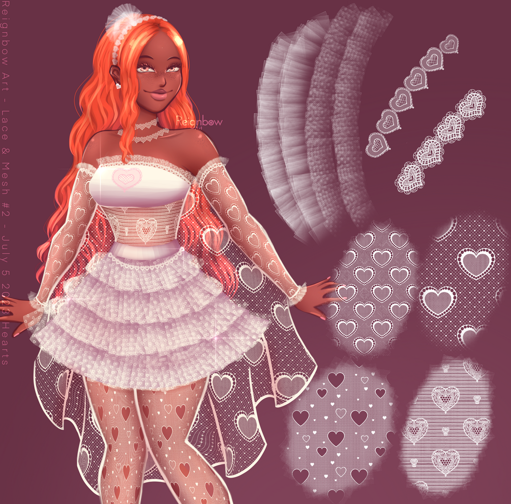 Lace & Mesh #2 Brushes - A beautiful set of 20+ cute heart-based lace brushes for Procreate! Featuring Fishnets, Improved Tulle with Tutu, Mesh, Lace Trims in all of the loving, loveliest love of hearts!